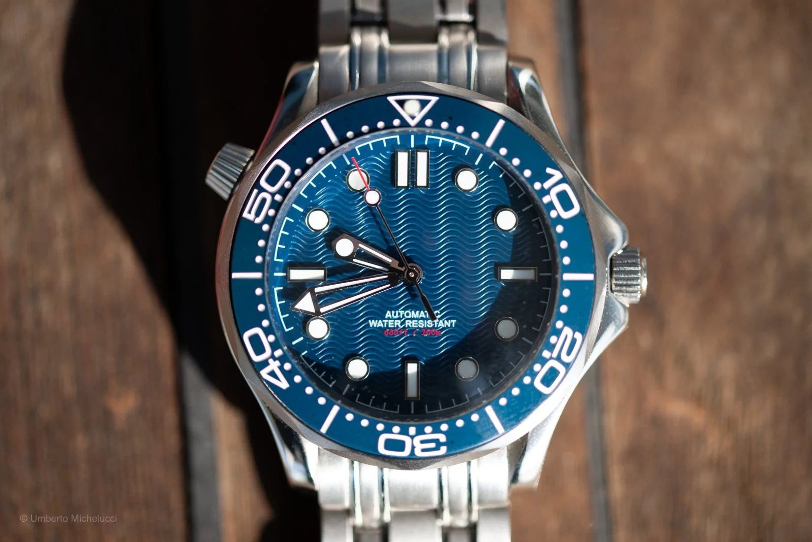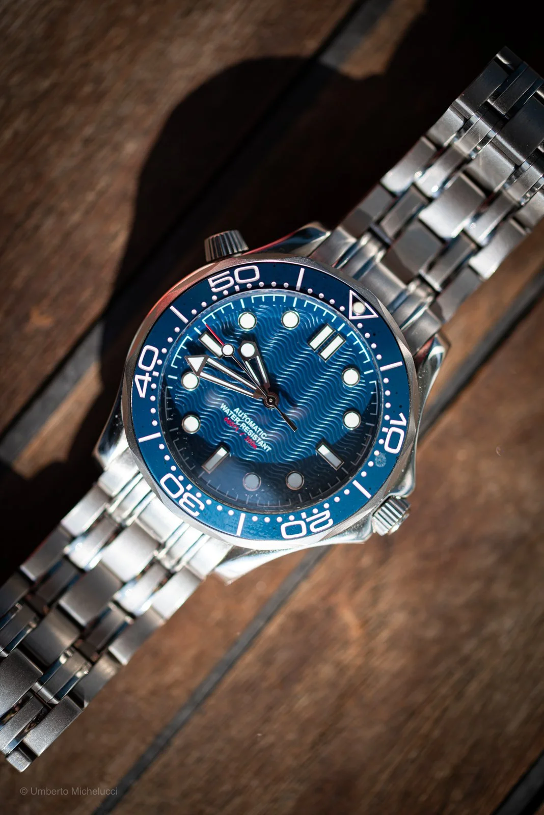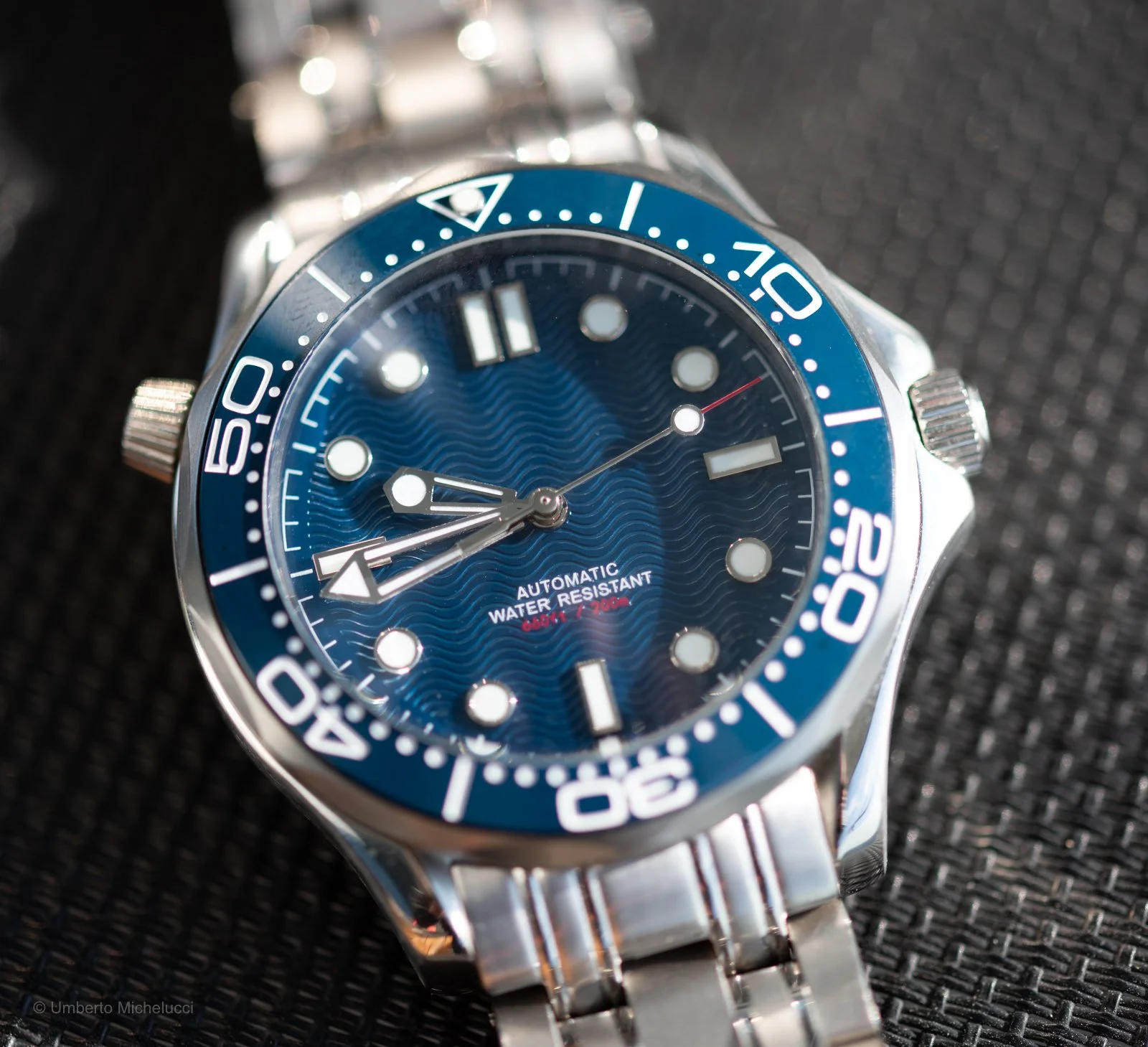 There’s something immediately captivating about a well-executed dive watch, and this piece captures that essence with confidence. From the first glance, the rich blue dial draws you in—its wave-like texture subtly playing with light, evoking the movement of the ocean. It’s a design that feels alive, constantly shifting depending on the angle, and it gives the watch a depth that goes beyond mere functionality.